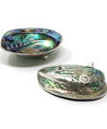 Beautiful hand-polished and hand-made Abalone shell dish with real silver accents, perfect for serving your caviar or small dish in style. Silver-rimmed edge, 3 "feet" to balance it on a surface.