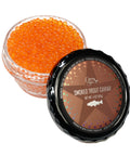 Our signature cold-smoked trout caviar is made from fresh Rainbow Trout roe, seasoned with sea salt and gently smoked using fine-aged PAPPY VAN WINKLE Bourbon barrel wood stave chips. The result is one of the most incredible palate-pleasers. We were the first company to smoke fish roe in the 2000s and remain the only one today to naturally cold-smoke it without the use of "liquid smoke," making it one of our most popular offerings.