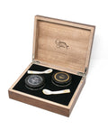 Burl wood gift box, 2 x 2oz caviar selections, 2 mother of pearl spoons