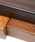 The beautiful gift box is made from solid mahogany and finished with walnut wood grain.