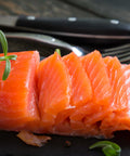 Also known as the filet mignon of salmon, with a texture of butter enhanced by a perfect balance of wood smoke, Salmon Fume is the highest quality smoked fish meat available. This Atlantic salmon loin, produced by Samaki Smoked Fish Co., New York, is truly one of the finest smoked salmon products you will find. Its perfectly fresh taste has the amazing texture of quality sashimi salmon cuts with a natural cold smoke that will have you coming back for more.