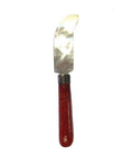 Mother of Pearl Blade/Coral handle: The blades are made from 100% Mother of Pearl but have been carefully filed so that they are not too sharp. The red coral handle is attached to the blade by a sterling silver band making for one elegant butter knife.