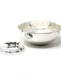 Serve your caviar in style, keeping it perfectly chilled throughout your caviar session. This elegant server features high-end, durable silver plating and a removable metal rack that holds a glass bowl, keeping your caviar elevated above ice. The dome, accented with a sturgeon handle, helps preserve the cold temperature and freshness of your caviar.